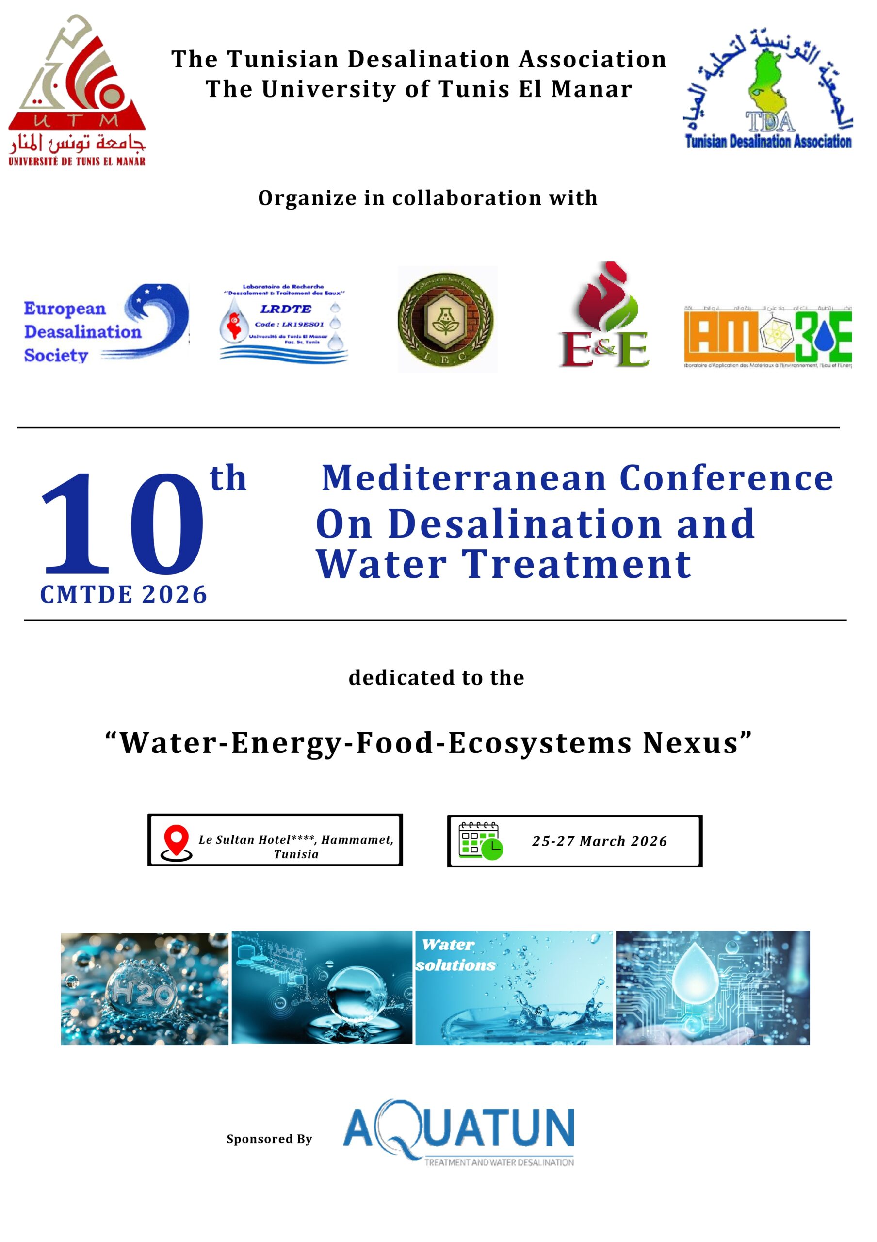 CMTDE 2026 Edition dedicated to: “ Water-Energy-Food-Ecosystems Nexus” from 25 to 27 March 2026, Hammamet
